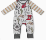 This adorable western romper is a must for the new little dude! Muted colors with fun western graphics and super soft material makes for a great gift!