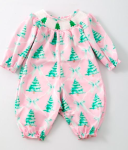 Soft pinks and greens make for the perfect holiday dress. Smocked trees on the collar and super soft material. This is a cute outfit for photos.